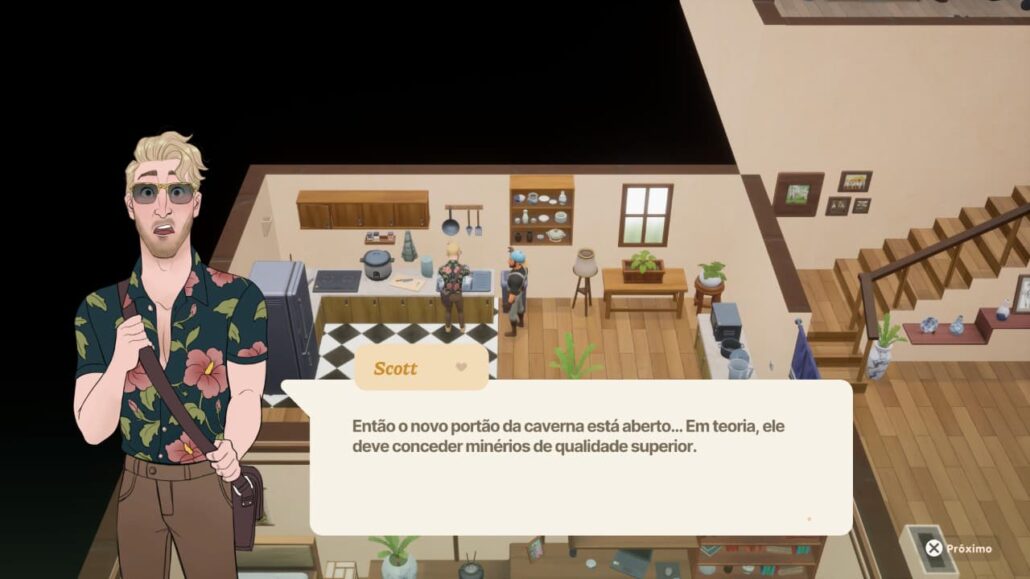 | 10❤️❤️❤️❤️❤️❤️❤️❤️❤️❤️ | Qualquer dia (19:00–03:00) | Museu | Scott criou um caminho de pétalas de flores ao redor do Museu. Ele mostra ao jogador as várias seções e explica como cada uma o lembra do jogador e os sentimentos que ele tem por ele. Finalmente, ele confessa seus sentimentos pelo jogador, e eles compartilham o primeiro beijo. |