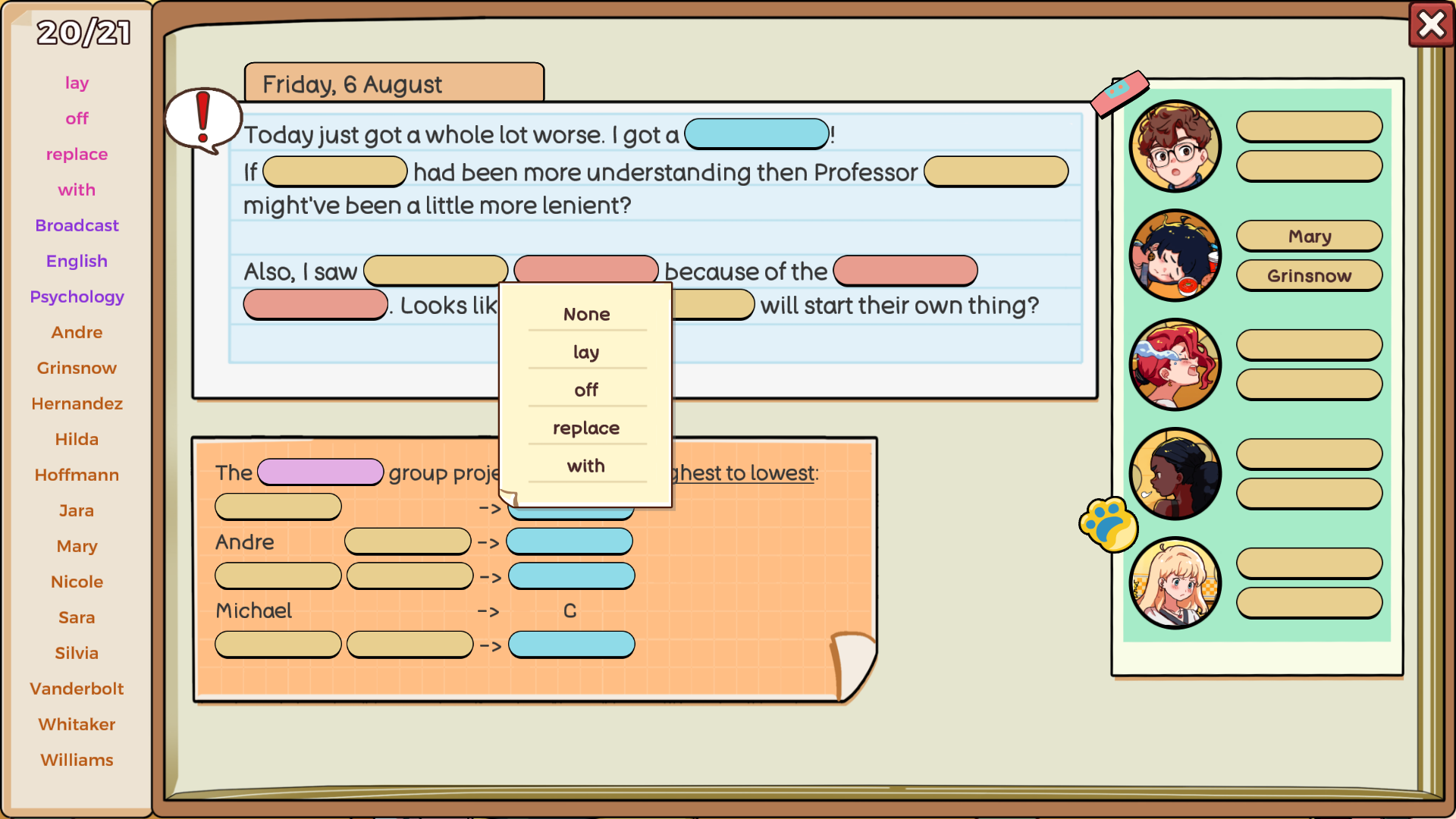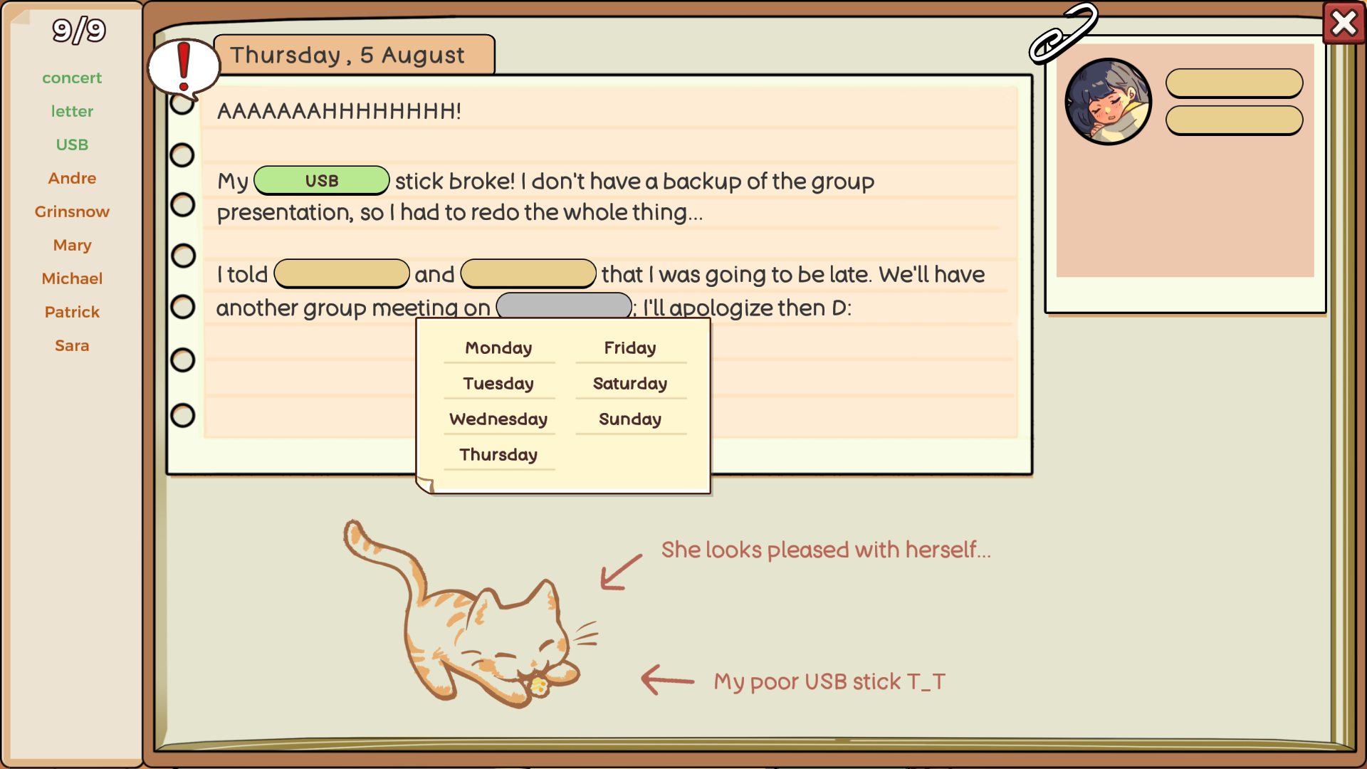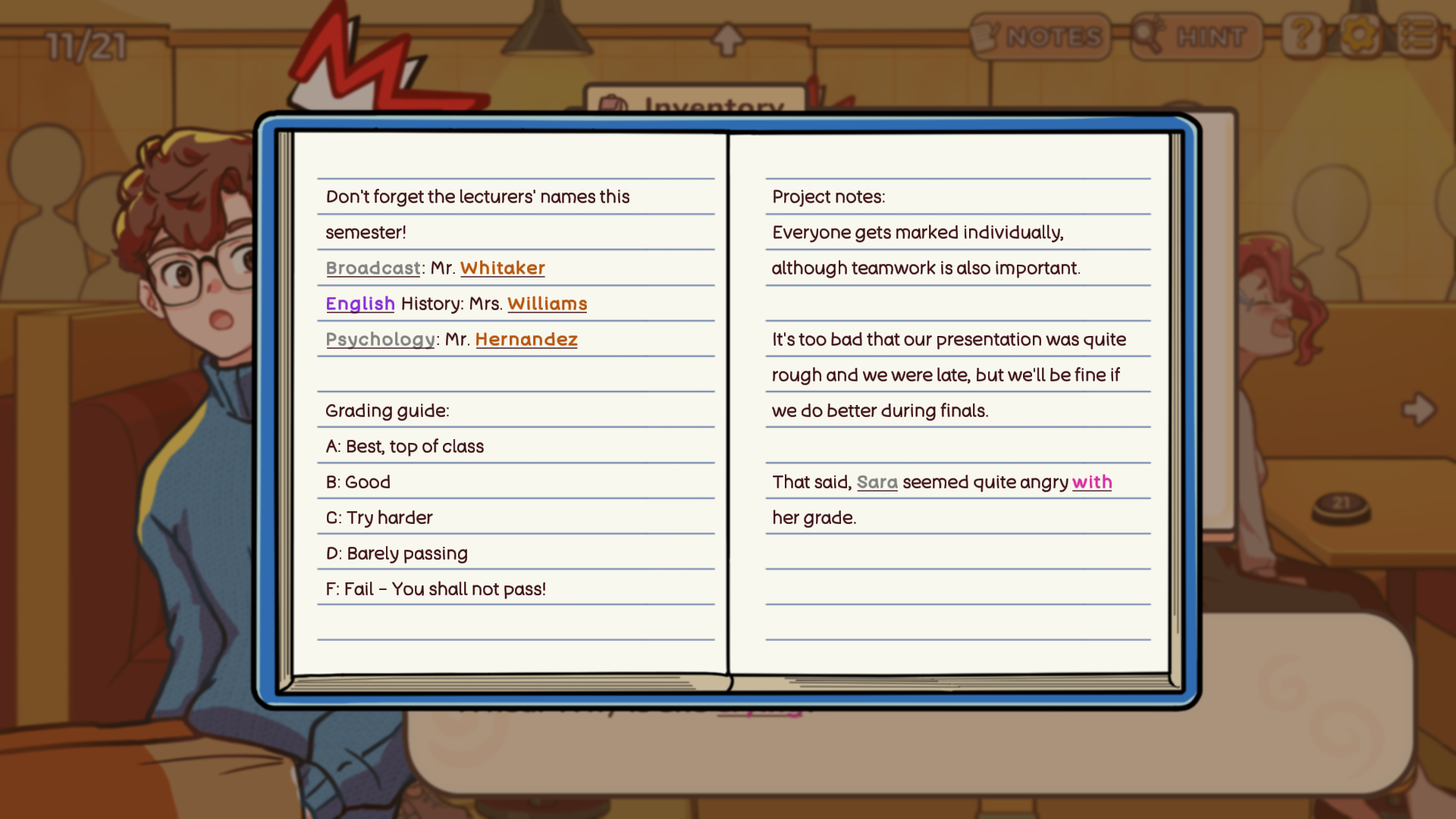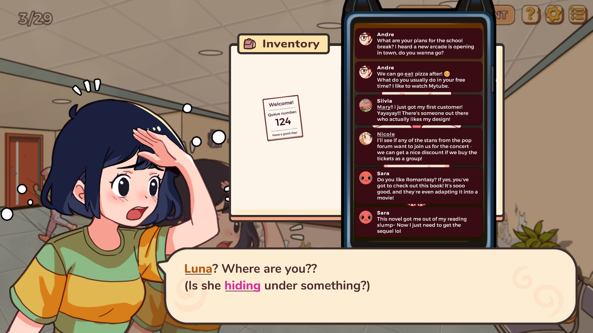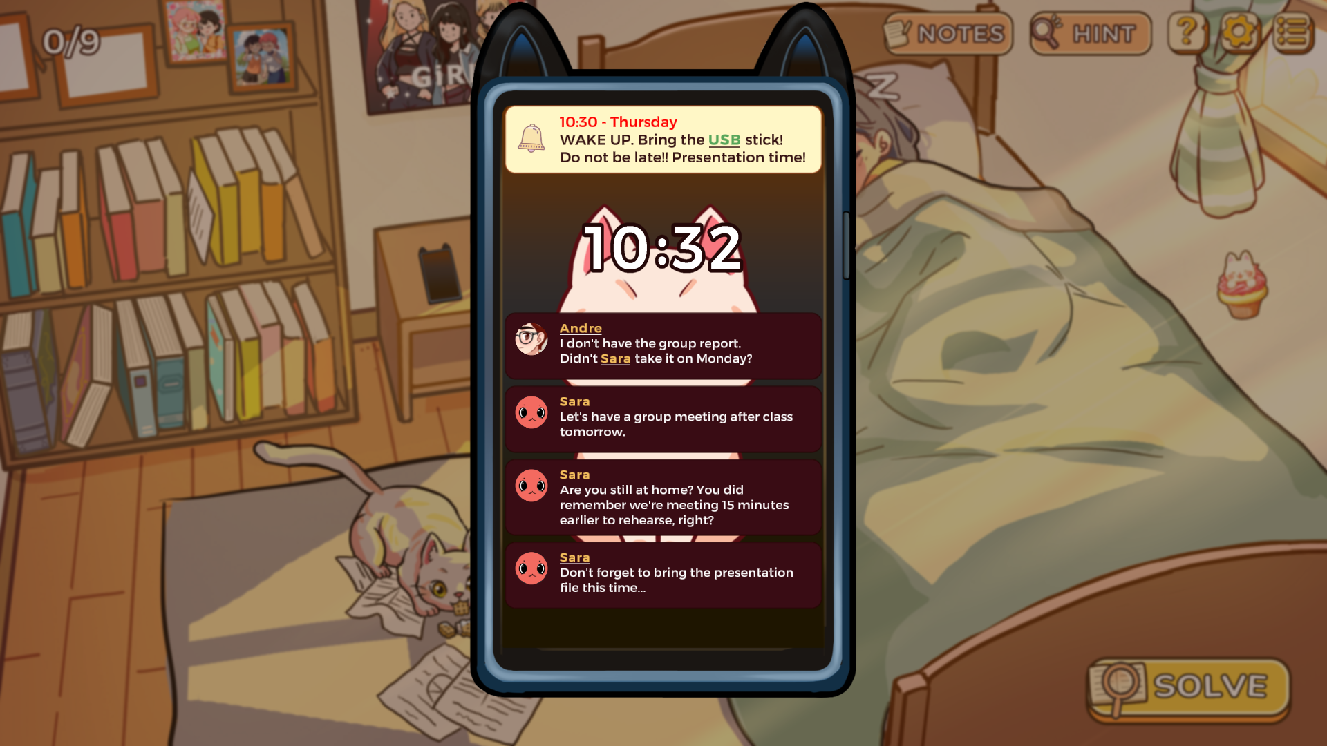 Em Little Problems, você assume o papel de Mary, uma jovem que avança em sua vida universitária enquanto equilibra responsabilidades com a família, amigos, eventos sociais e até o cuidado de seus pets. No caminho, aparecem pequenos dilemas que precisam ser desvendados: desde entender um mal-entendido entre colegas até descobrir onde o gato se meteu. A sensação é quase como acompanhar uma boa fofoca, mas de forma interativa e cheia de charme.